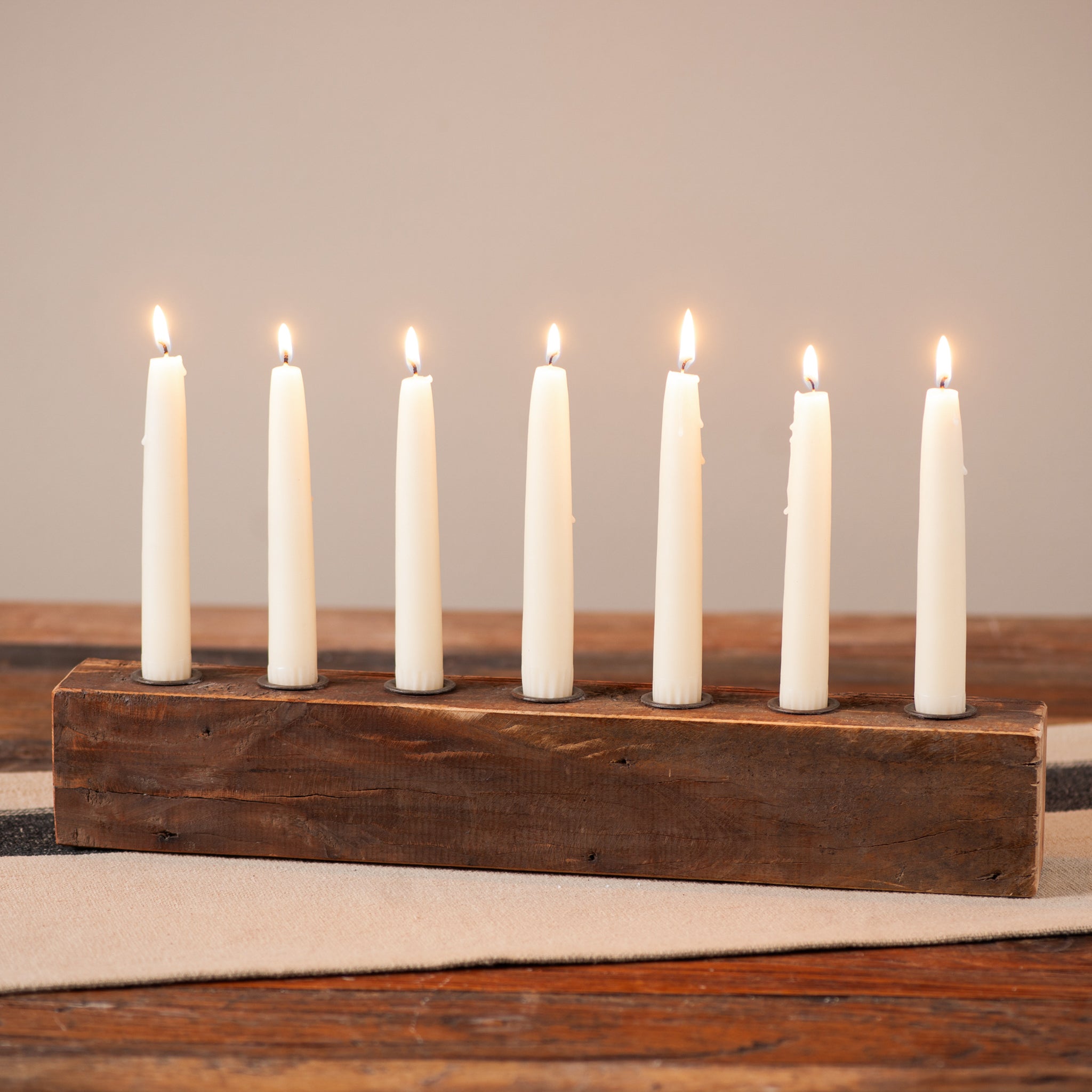 Vintage Wood Block Seven Candle Holder