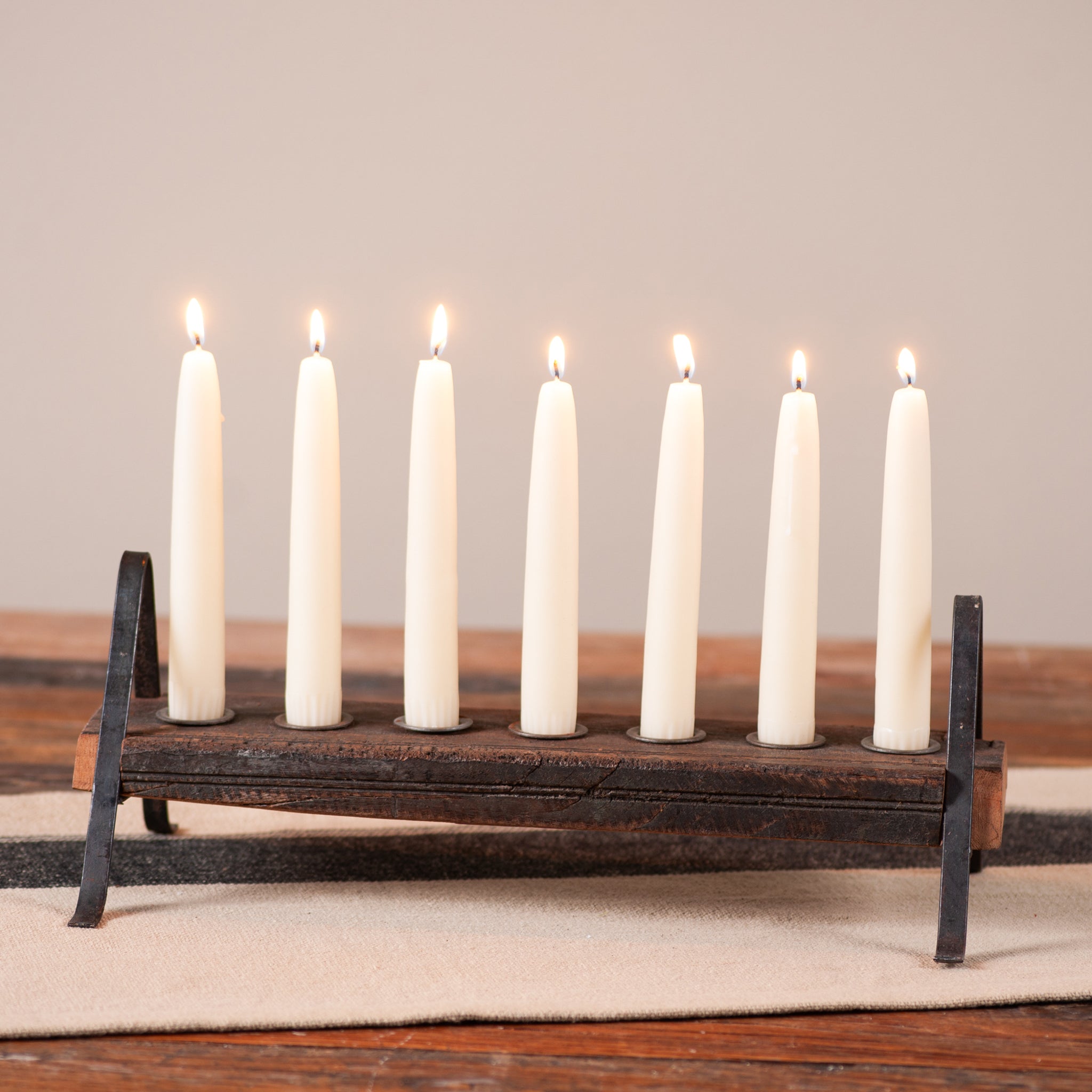 Vintage Wood Block Seven Candle Holder with Iron Legs