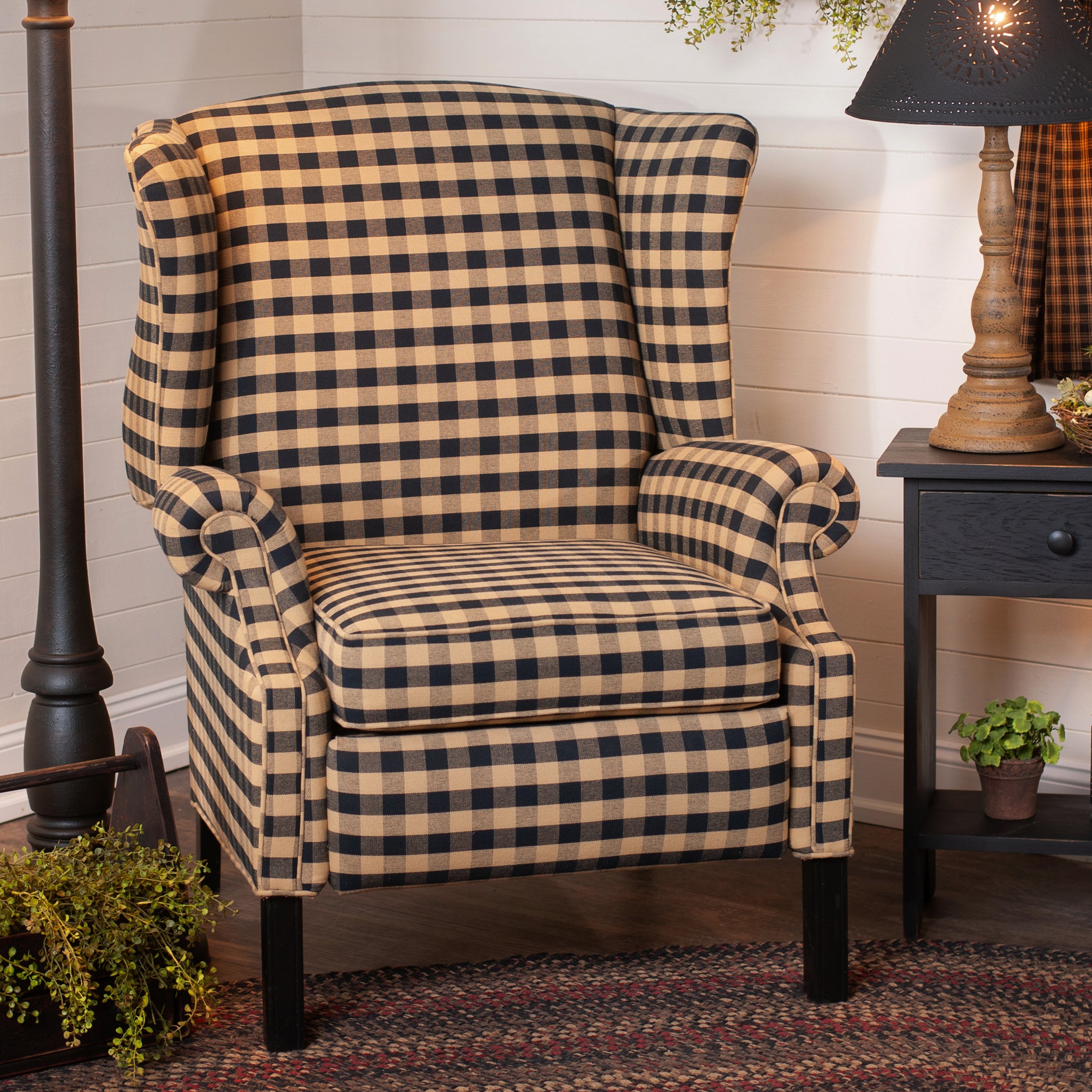 This wingback recliner blends traditional charm with everyday comfort. The high back and graceful wings offer a classic silhouette, while the reclining feature provides a relaxing retreat at the end of the day. Rolled arms and a well-cushioned seat create inviting support. Perfect for a cozy living room or reading corner, it brings warmth and timeless Early American style to your home.