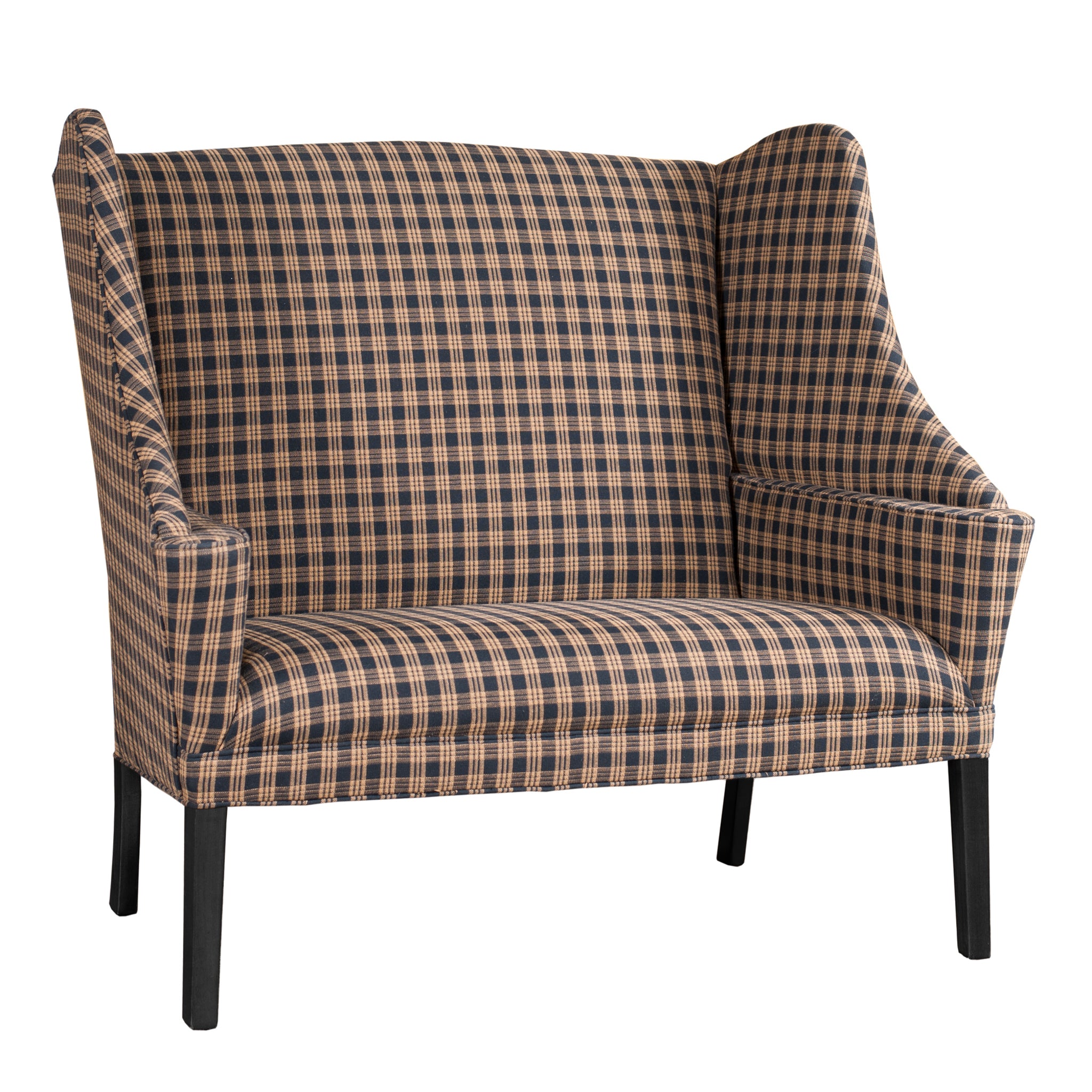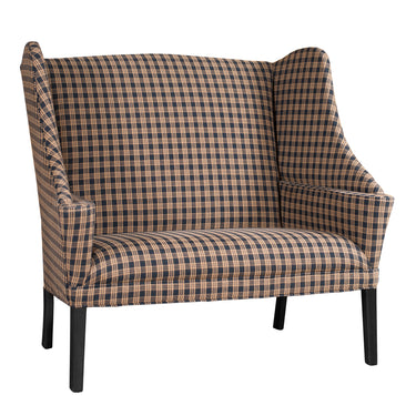 This settleback settee brings classic simplicity and welcoming comfort to any room. Its tall, gently curved back offers a cozy, sheltered feel, while the slim arms and cushioned seat create an inviting place to relax. Sturdy wooden legs provide a timeless foundation. Perfect for an entryway, hearthside, or sitting room, it adds warm, traditional character to the home.