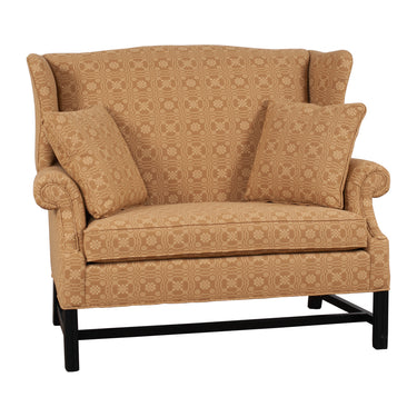 This wingback settee brings timeless comfort and classic Early American style to your home. Its high back and graceful wings create a cozy, gathered feel, while the rolled arms and cushioned seat offer relaxed support. Built with sturdy craftsmanship and a welcoming silhouette, it fits beautifully in living rooms, entry spaces, or beside the hearth as a warm place to sit and unwind.