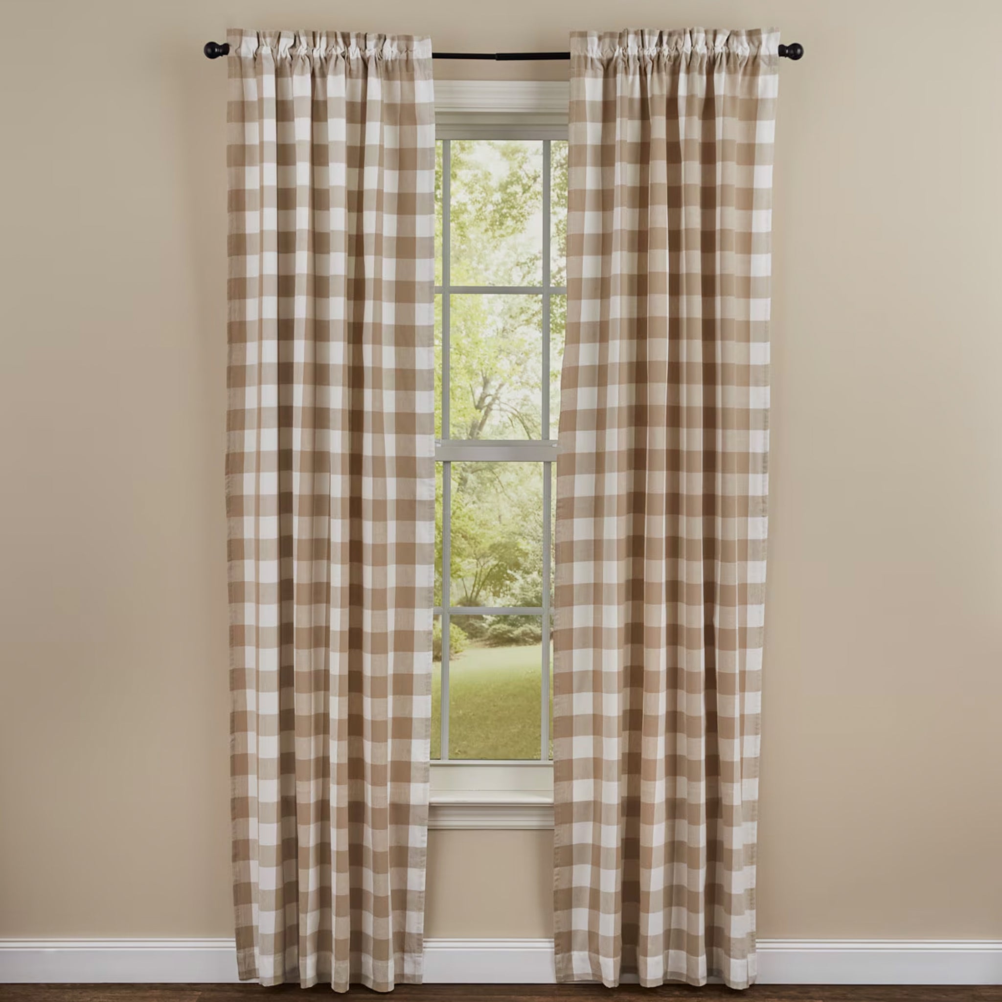 Home Shop Curtains Natural and Cream Check Lined Panels 84-Inch