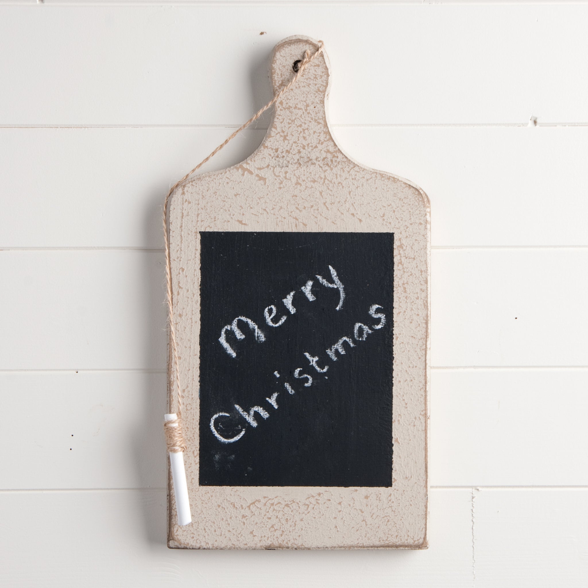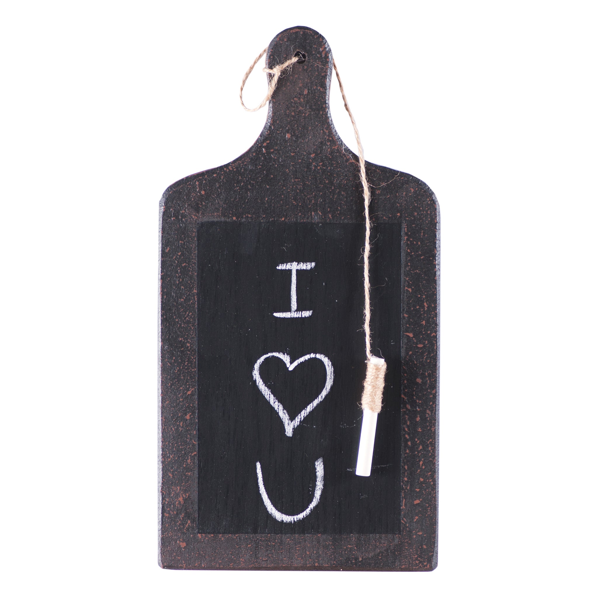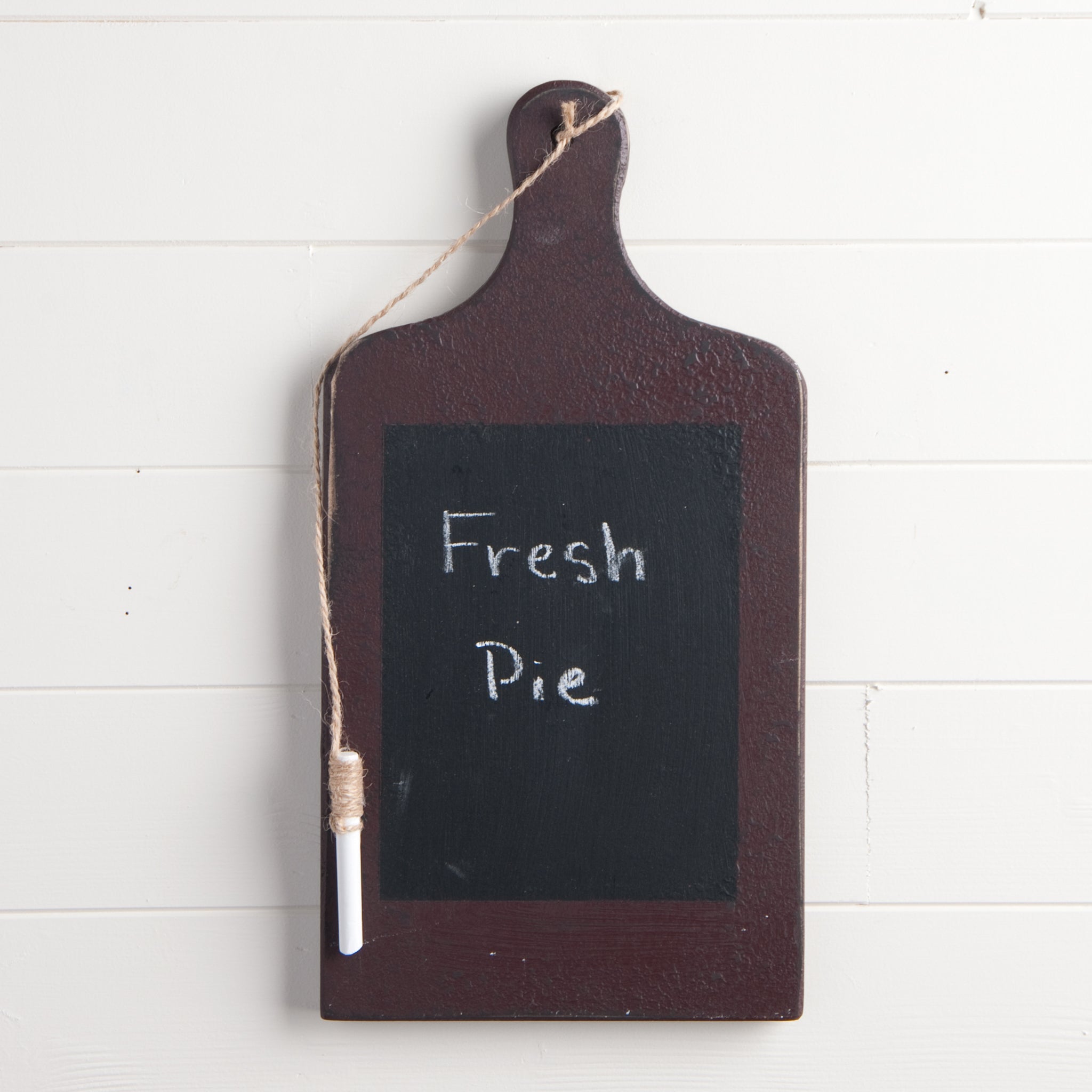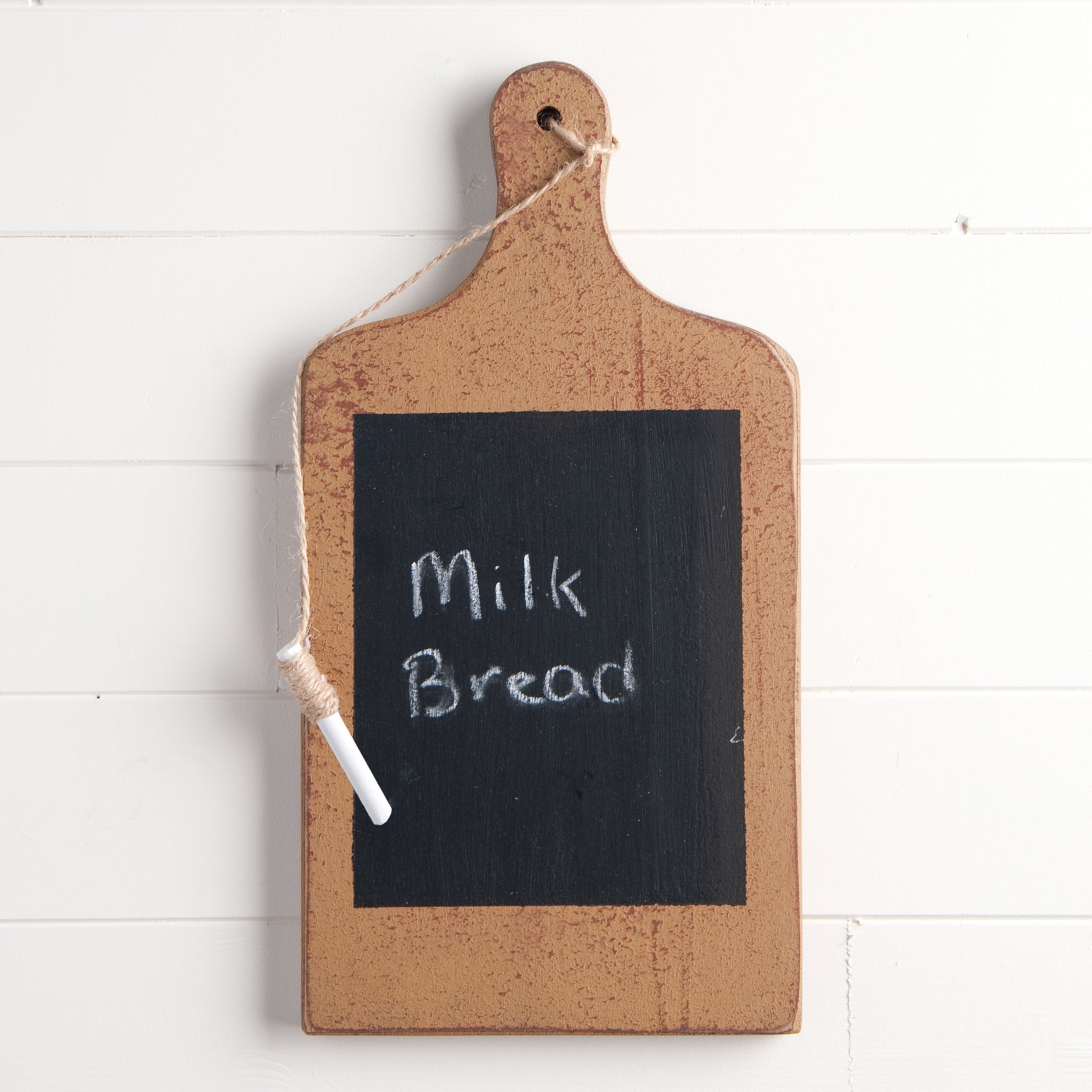 Our petitely sized Wooden Chalk Paddle is just big enough to let a small note for your family. Each paddle has a chalk piece already attached with jute string. Created from pine wood. Textured paint finish. Chalkboard painted center. This item can be hung on the wall or placed in a plate rack for ease of use. Made in the USA.