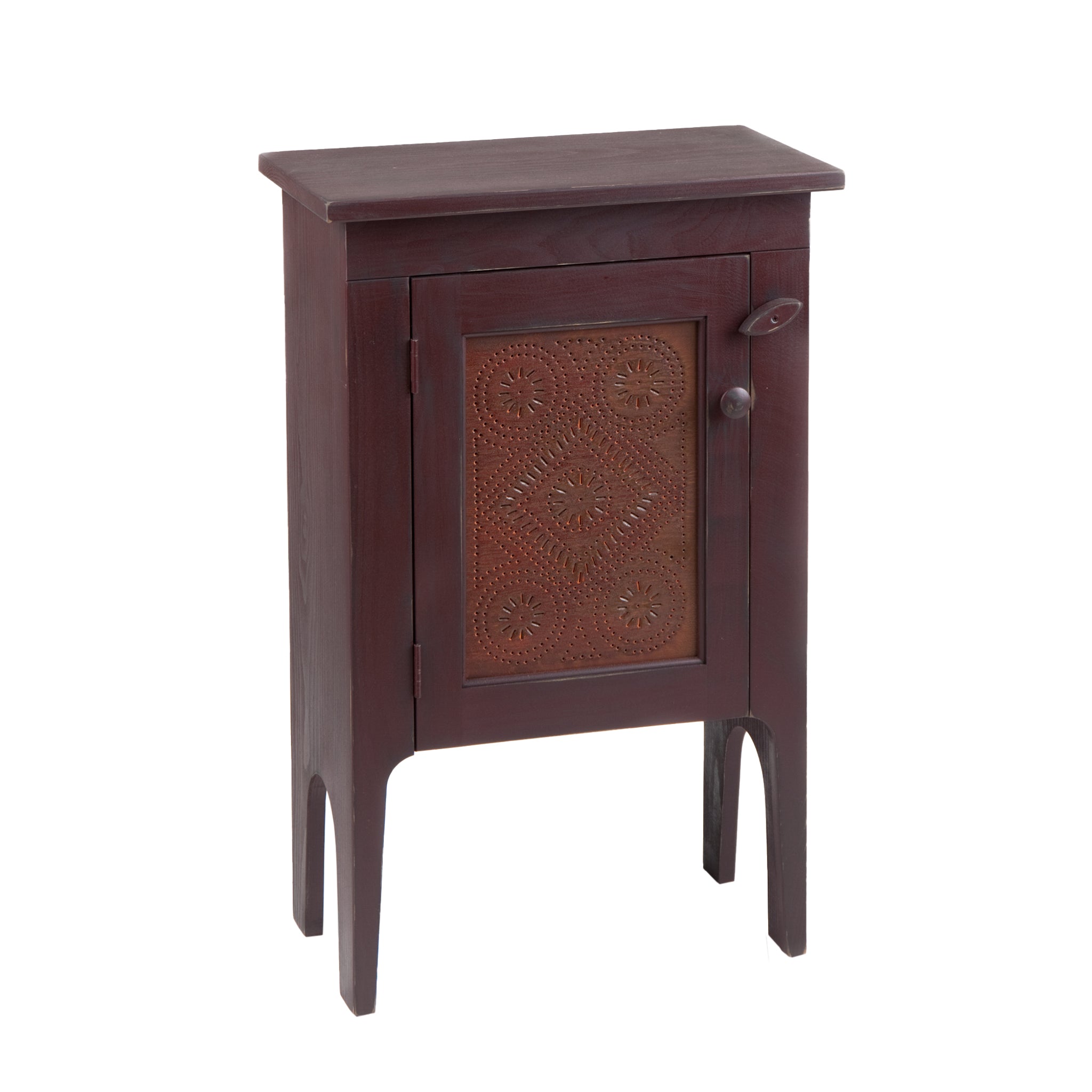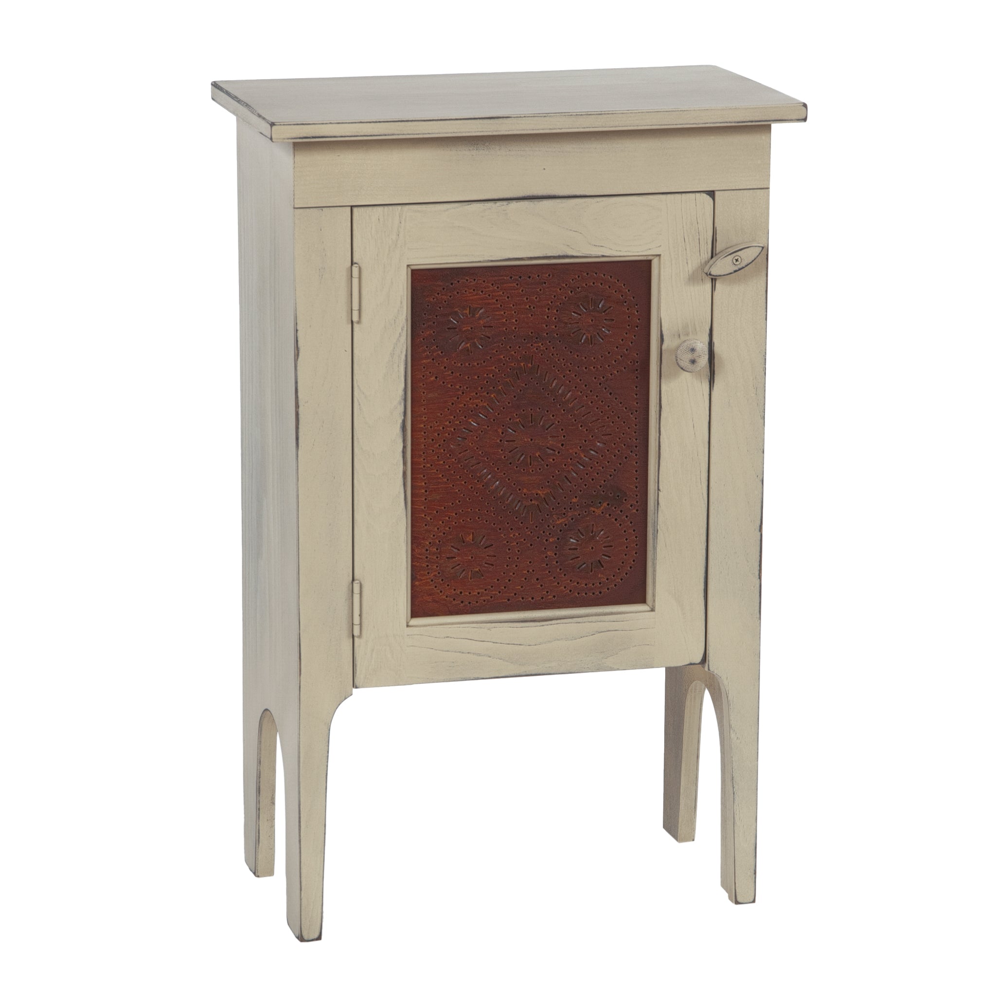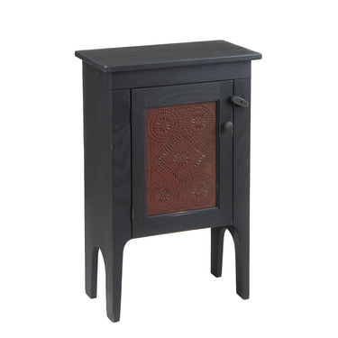 This little Black Accent Cabinet is just perfect for any area in need of a little something. Sized to suit a multitude of tasks, this adorable cabinet has storage space as well as display space for a rustic lamp. The Cabinet has a rusty punched tin panel insert in the door.