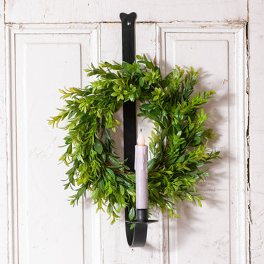 Enhance your favorite wreath display with our Wall Mount Wreath and Candle Holder. Featuring a sturdy hook for secure wreath hanging and a built-in holder for a 1" diameter battery-operated taper, this versatile piece brings a cozy glow and decorative charm to any room in your home.