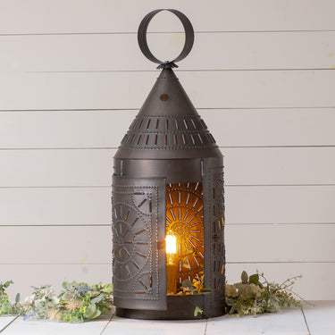 The oversized Tinner's Lantern is a stunning piece crafted with the same quality and detail as our traditional lanterns. Designed by Irvin himself, this hand-punched tin lantern reflects the timeless craftsmanship that started it all. A true statement piece, it's sure to spark conversation and bring enduring charm to your home.