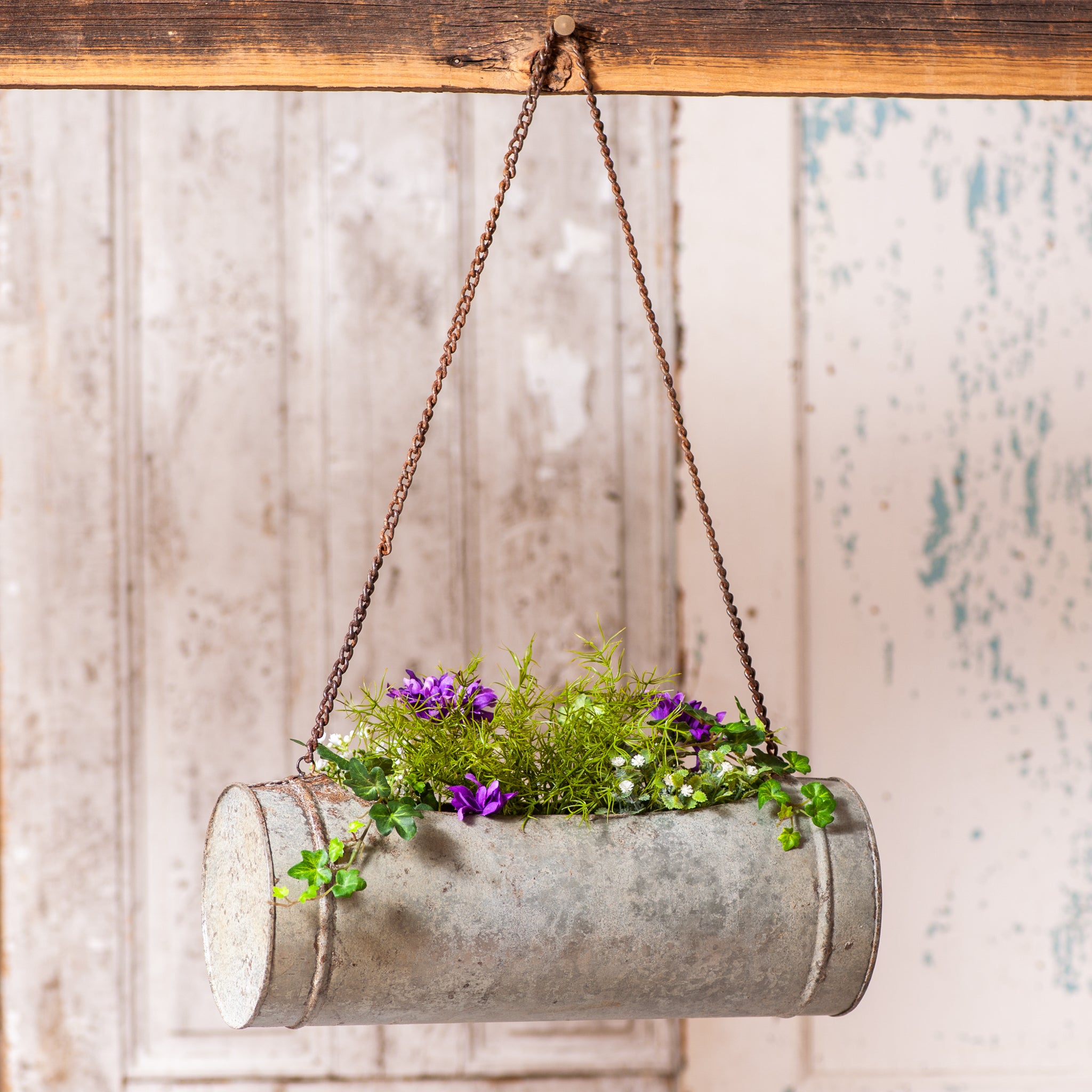 Add rustic charm to your space with our Rustic Planter, featuring a distressed barrel design suspended by a sturdy chain. Perfect for pergolas, beams, or walls, it's ideal for small plants, succulents, or faux florals. Hang indoors or outdoors with ease to showcase your favorite greenery in a simple, homespun style. Handcrafted in India.