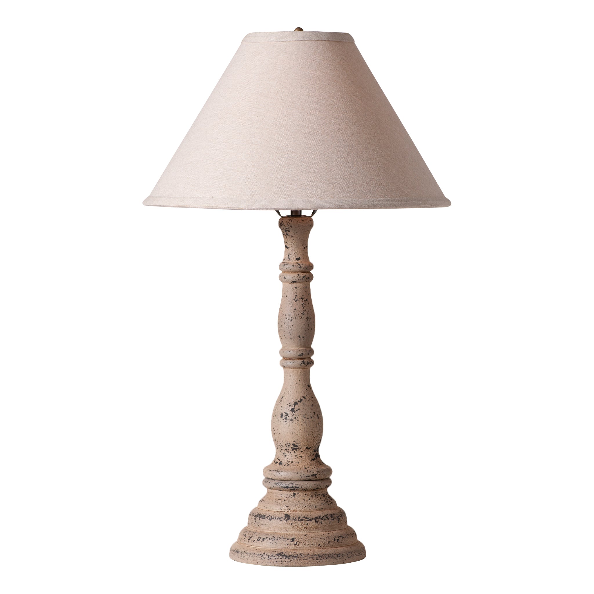This medium-sized lamp is a versatile choice for your office, family room, or entryway. The base, crafted from solid Poplar hardwood and hand-painted for a rustic look, ensures durability and timeless appeal.