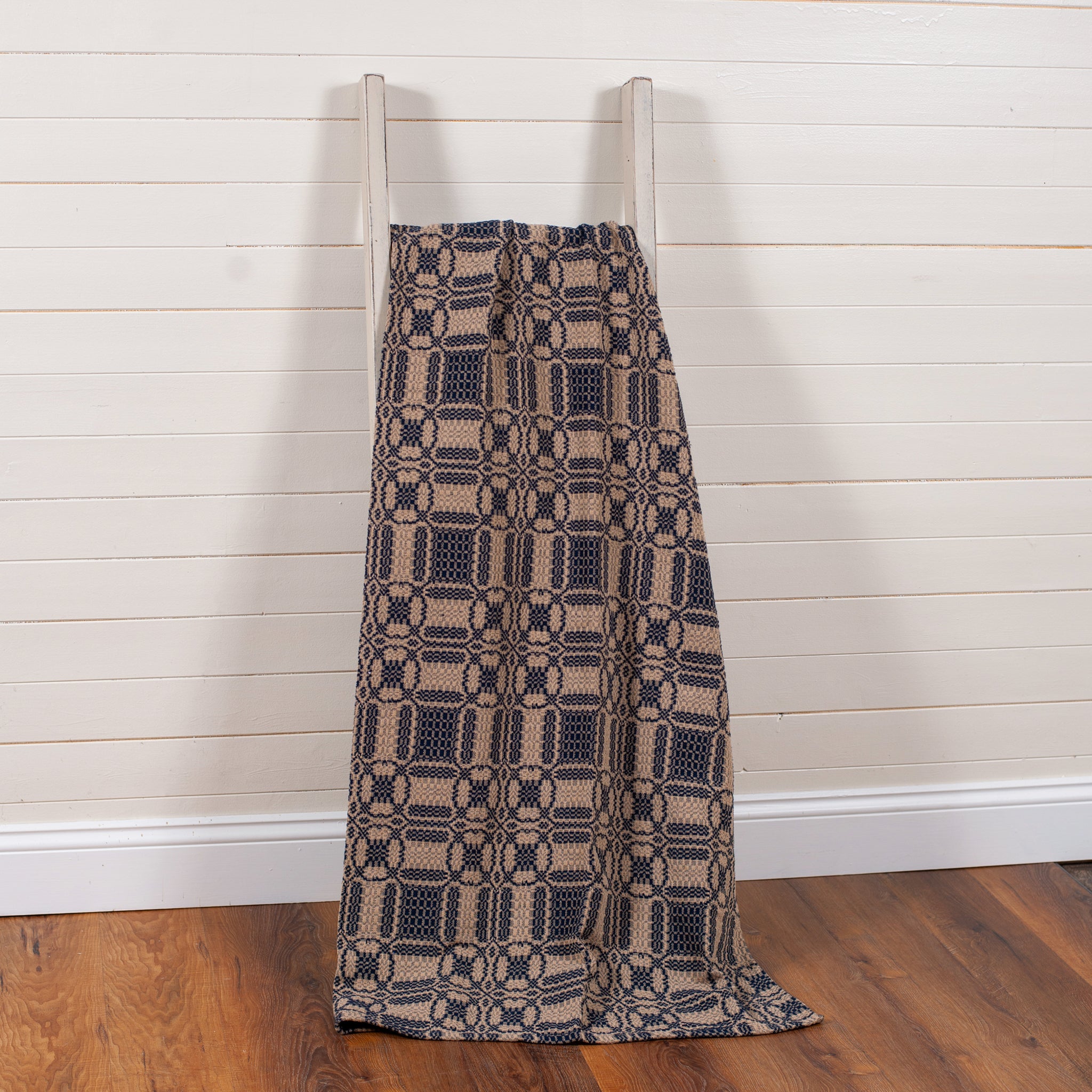 Bring heritage charm into your home with our Cambridge Throw in Navy and Tan. Handwoven in a traditional historic pattern, this cozy accent adds warmth and texture to any space. Perfect for draping over a sofa, chair, or blanket ladder, it blends timeless design with rustic elegance-ideal for colonial, farmhouse, or primitive-style interiors.
