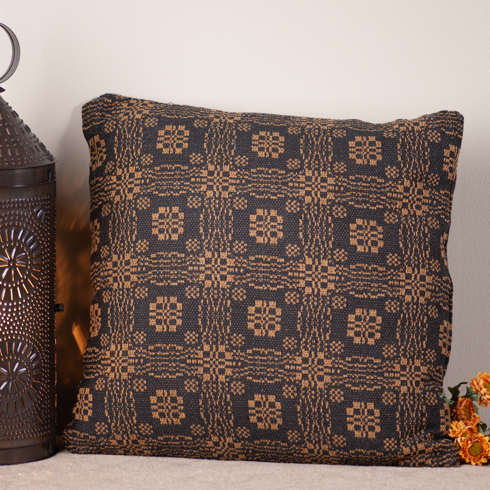 Add classic charm to your home with our Gettysburg Black and Mustard Pillow. Featuring a traditional woven pattern inspired by early American textiles, this 20-inch pillow blends timeless style with cozy comfort. Perfect for your sofa, bench, or bed, it adds a warm, primitive touch to any room. Made in the USA with quality craftsmanship and heritage appeal.
