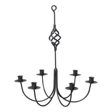Wrought Iron Mini 6 Arm Hanging Candelabra with Basket
