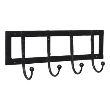 Meticulously crafted with attention to detail, this coat rack features four hooks expertly welded to provide reliable support for your coats, hats, and other accessories such as fireplace tools. The possibilities for this versatile rack are limitless, adding charm to your home and serving as a stylish, functional accessory for any home or office. Handcrafted in India.