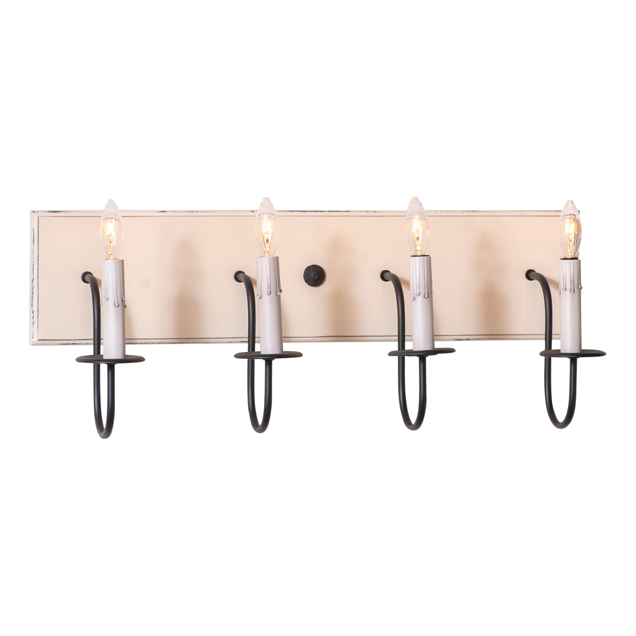 Our 4-Arm Mirror Light is a charming decorative accent, perfect for enhancing your powder room or hallway. Designed to cast ample light, it reflects the homespun beauty of the past. The solid Poplar hardwood back is hand-painted for an authentic rustic finish, adding timeless style to your space.
