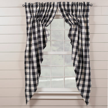 Black and Cream Check 63-Inch Lined Prairie Swag Set