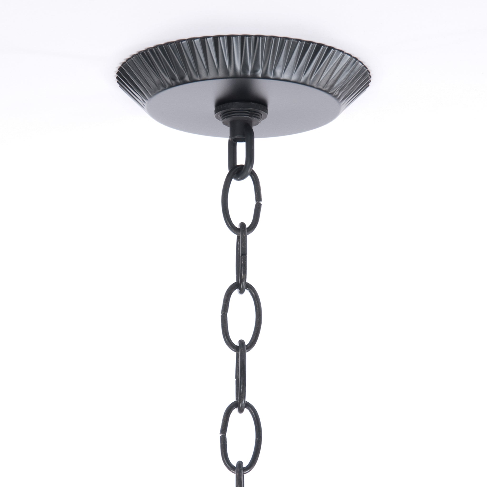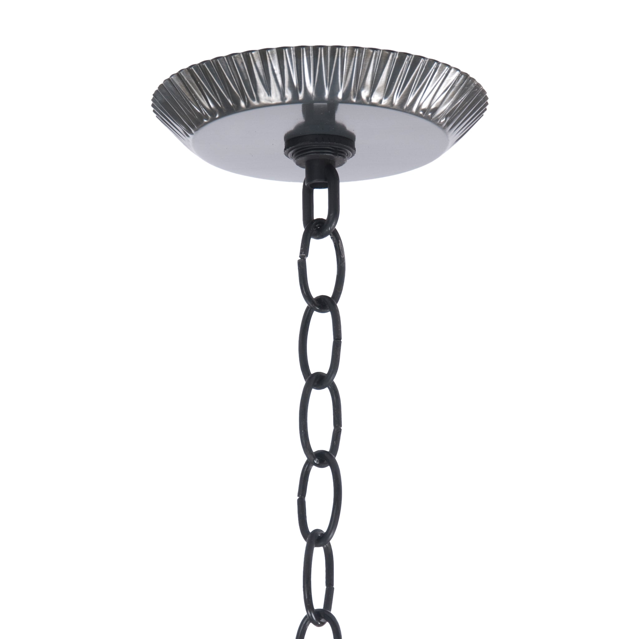 - includes 3-feet of chain, a 5.5-Inch diameter ceiling plate, crossbar, threaded nipple, chain connector collar, screw collar ring