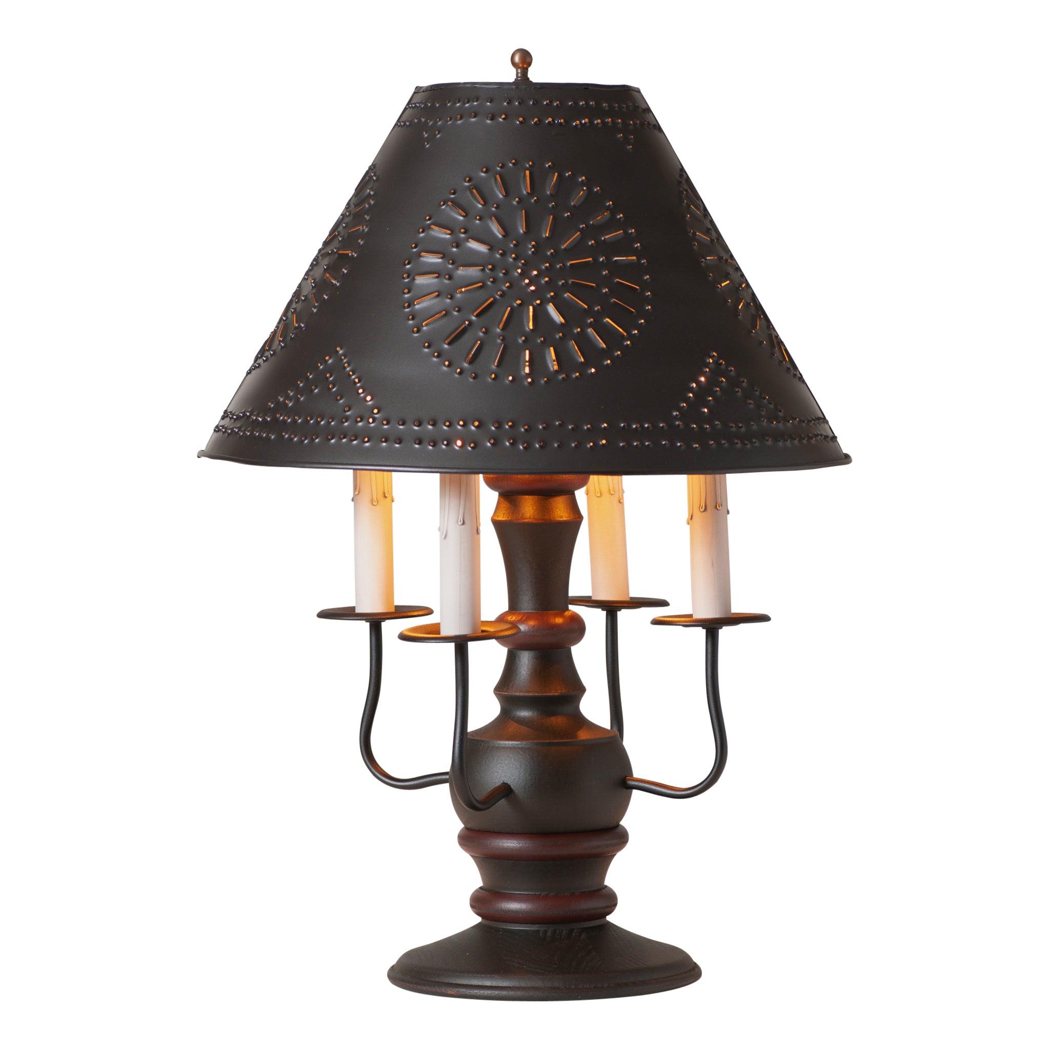 Cedar Creek Wood Table Lamp with Smokey Black Metal Shade in Rustic Finishes