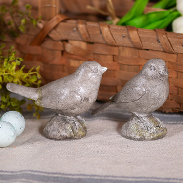 This charming set of bird figurines mimics the look of weathered cement, adding a timeless touch to your garden or home decor. Imported.