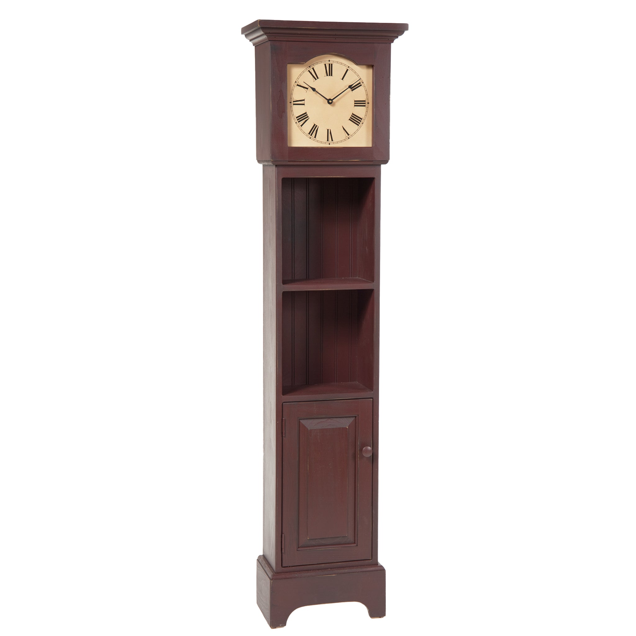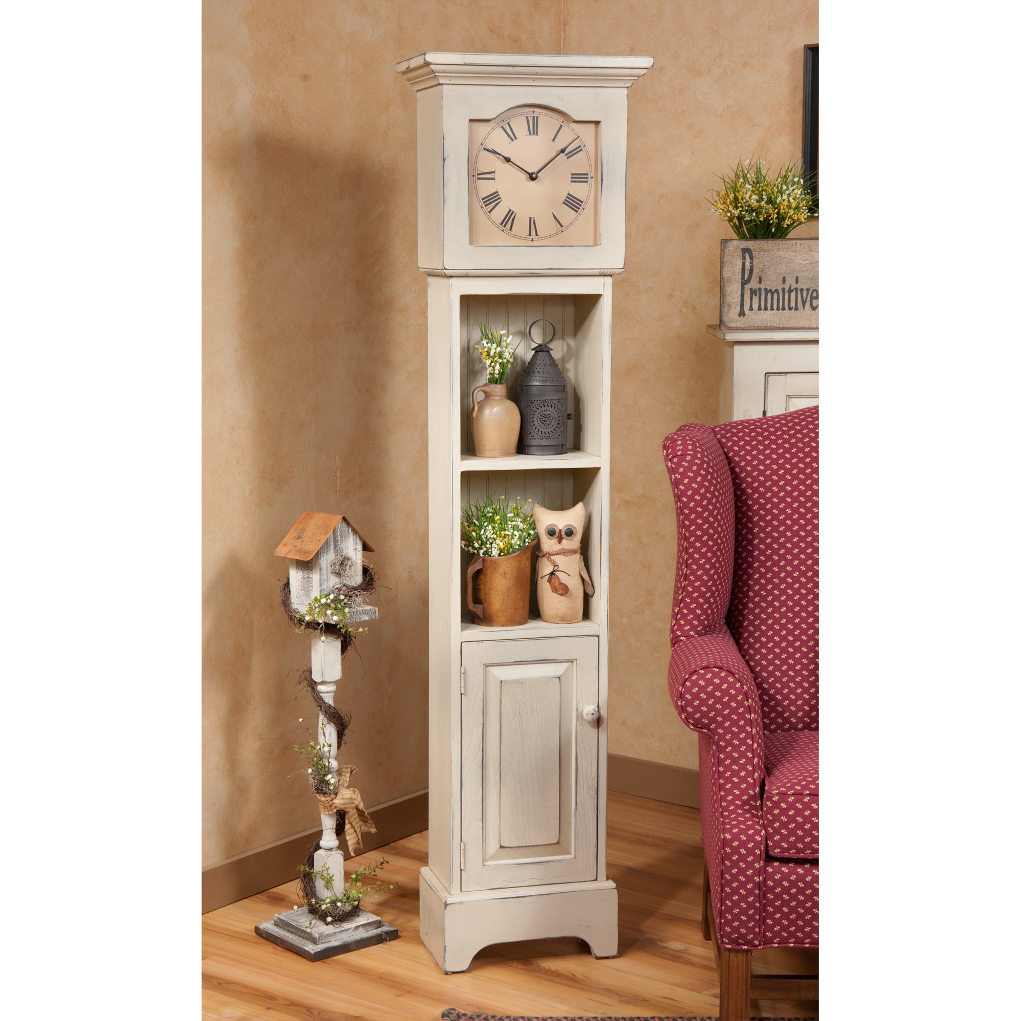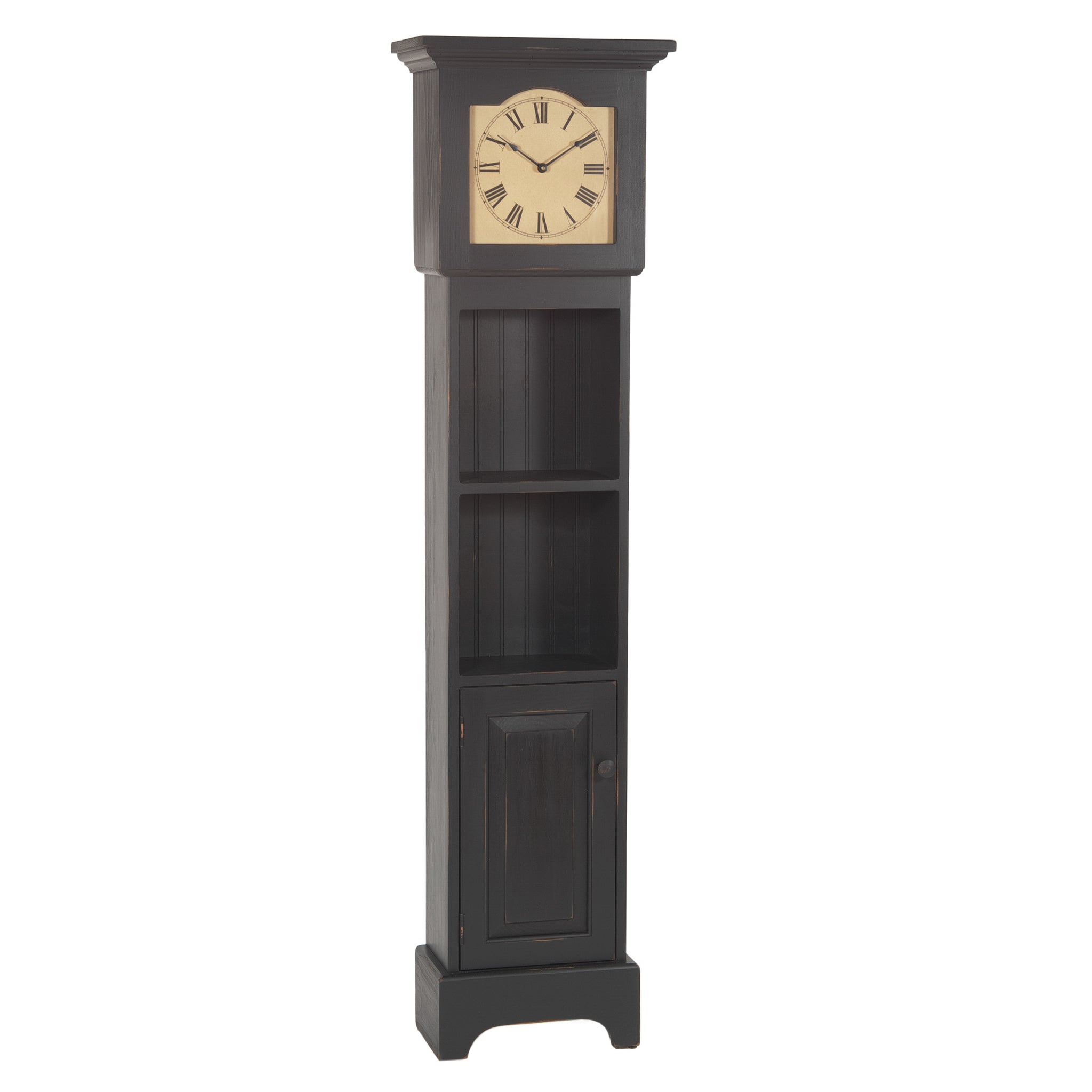 Our Grandfather Clock has two exposed shelves and storage behind the door.