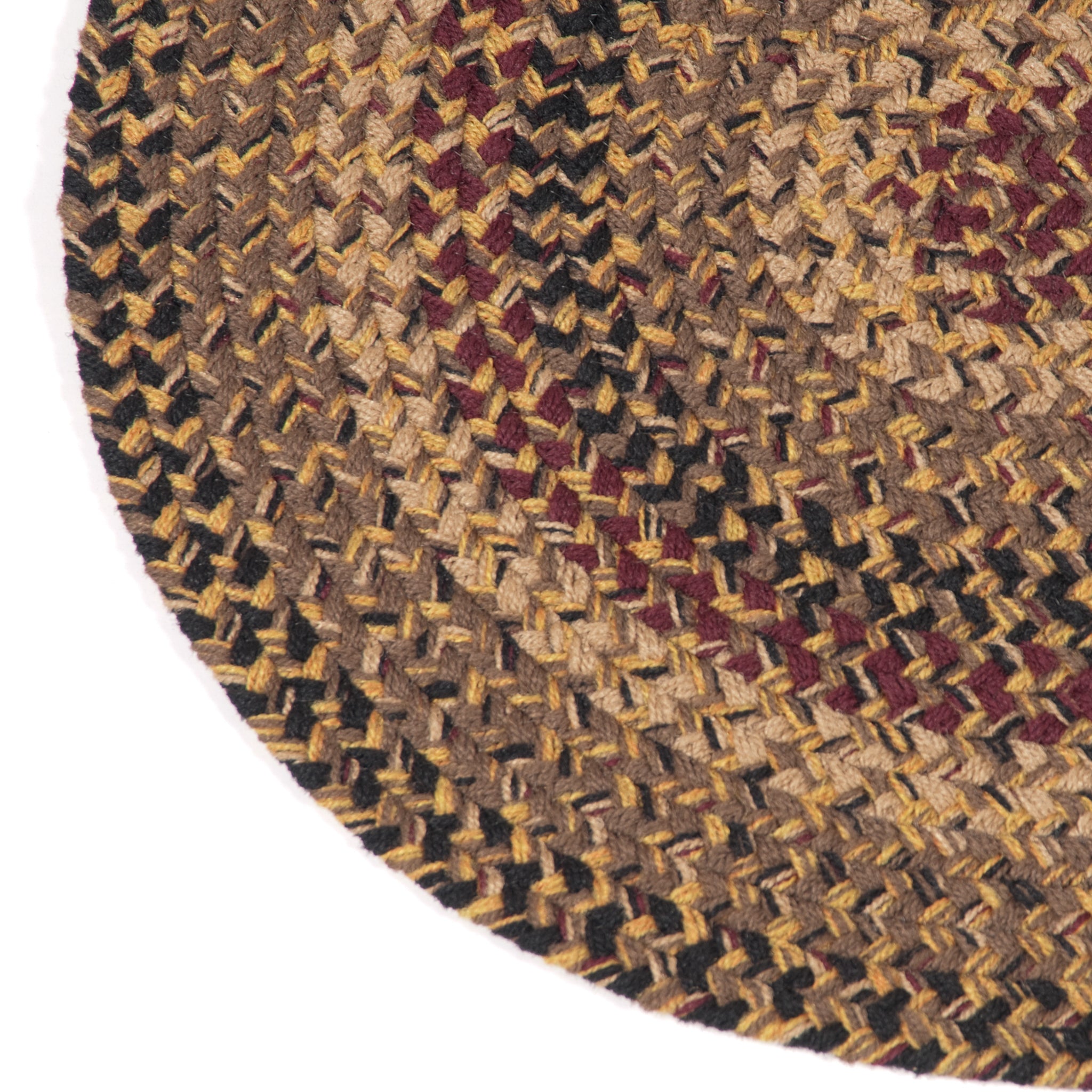 The Hearthside pattern has tones of burgundy red, brown, black and cream. This high quality, true flat braided rug consists of 100% spun polypropylene yarn also known as Olefin. This fiber is so strong and colorfast that the smaller rugs can be washed in the machine in cold water and lay flat to dry. Olefin is known for being stain resistant, fade resistant, mildew resistant and dries quickly. Please allow 3–4 weeks for delivery. Ships within the continental U.S. only. Sample pieces are available—call 800-800-4846 for details.