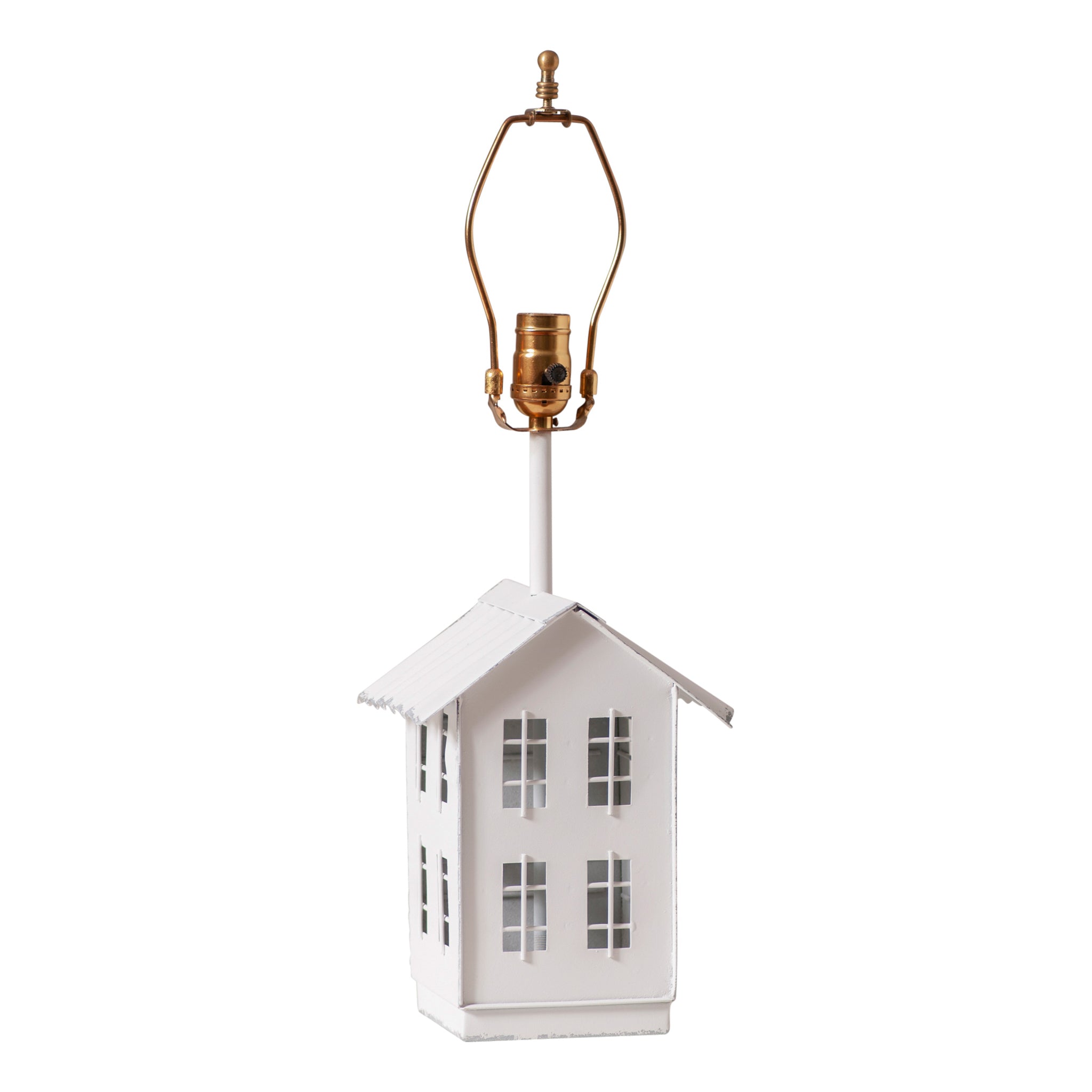 Bring farmhouse charm to your space with this unique table lamp, featuring a base designed to resemble a quaint metal saltbox house with tiny windows on each side. Perfect for country decor, cottage-style rooms, or cozy reading nooks, it adds warmth and imagination. Pair it with one of our fabric shades for a striking accent in your sitting area. Handcrafted in India.