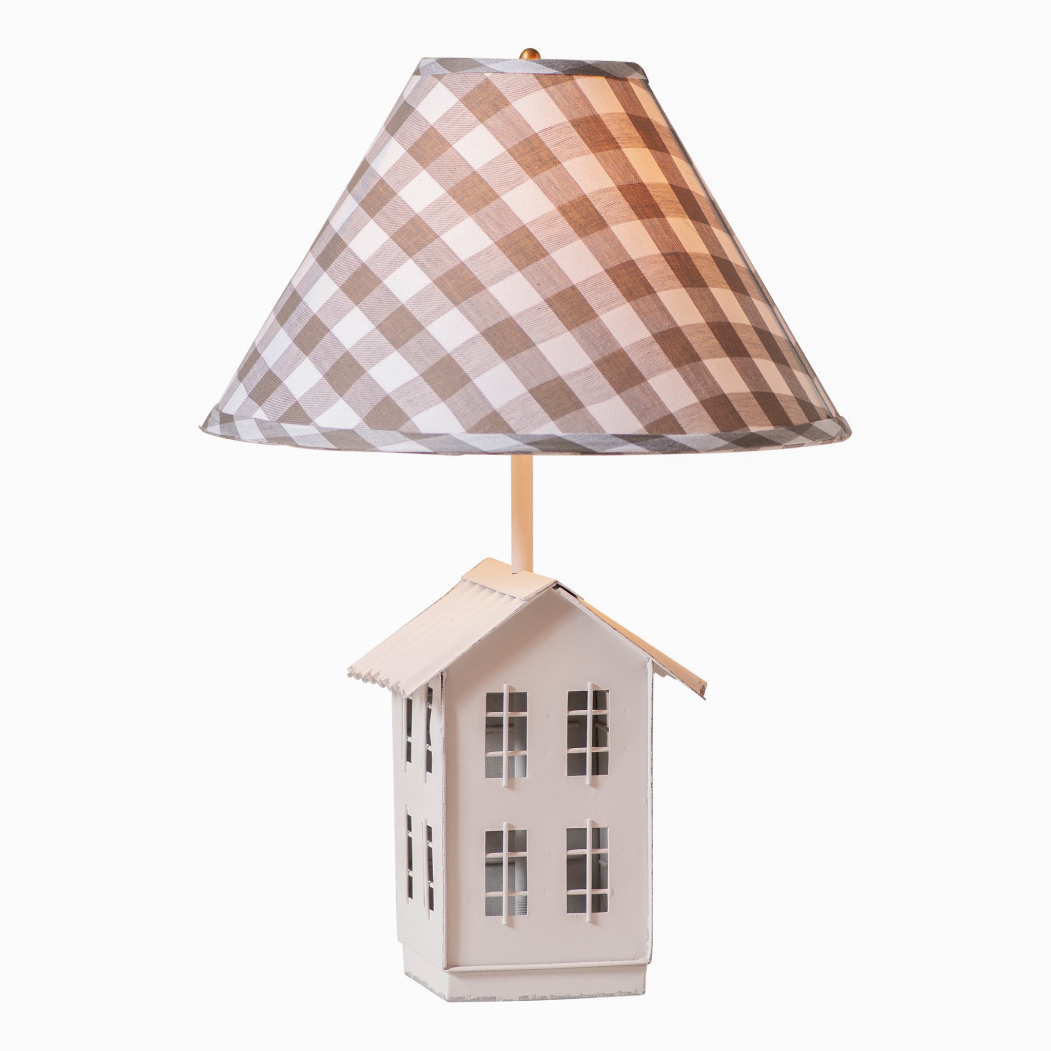 Bring farmhouse charm to your space with this unique table lamp, featuring a base designed to resemble a quaint metal saltbox house with tiny windows on each side. Perfect for country decor, cottage-style rooms, or cozy reading nooks, it adds warmth and imagination. Handcrafted in India.