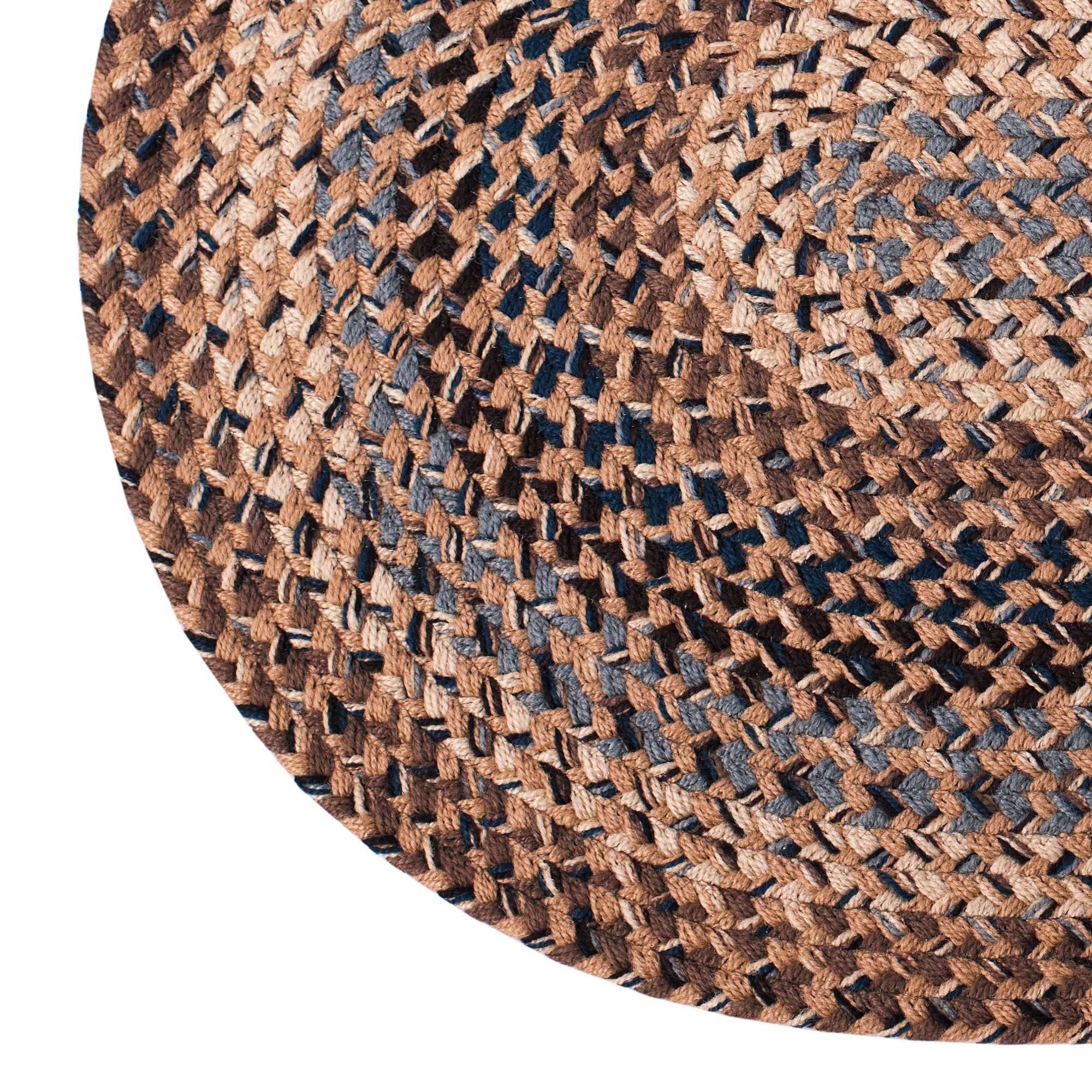 The Lakeside Collection features tones of tan, camel, light brown, dark brown, grey blue and dark blue. This high quality, true flat braided rug consists of 100% spun polypropylene yarn also known as Olefin. This fiber is so strong and colorfast that the smaller rugs can be washed in the machine in cold water and lay flat to dry. Olefin is known for being stain resistant, fade resistant, mildew resistant and drys quickly. Please allow 3–4 weeks for delivery. Delivery available within the continental U.S. only. Sample pieces are available—call 800-800-4846 for details.