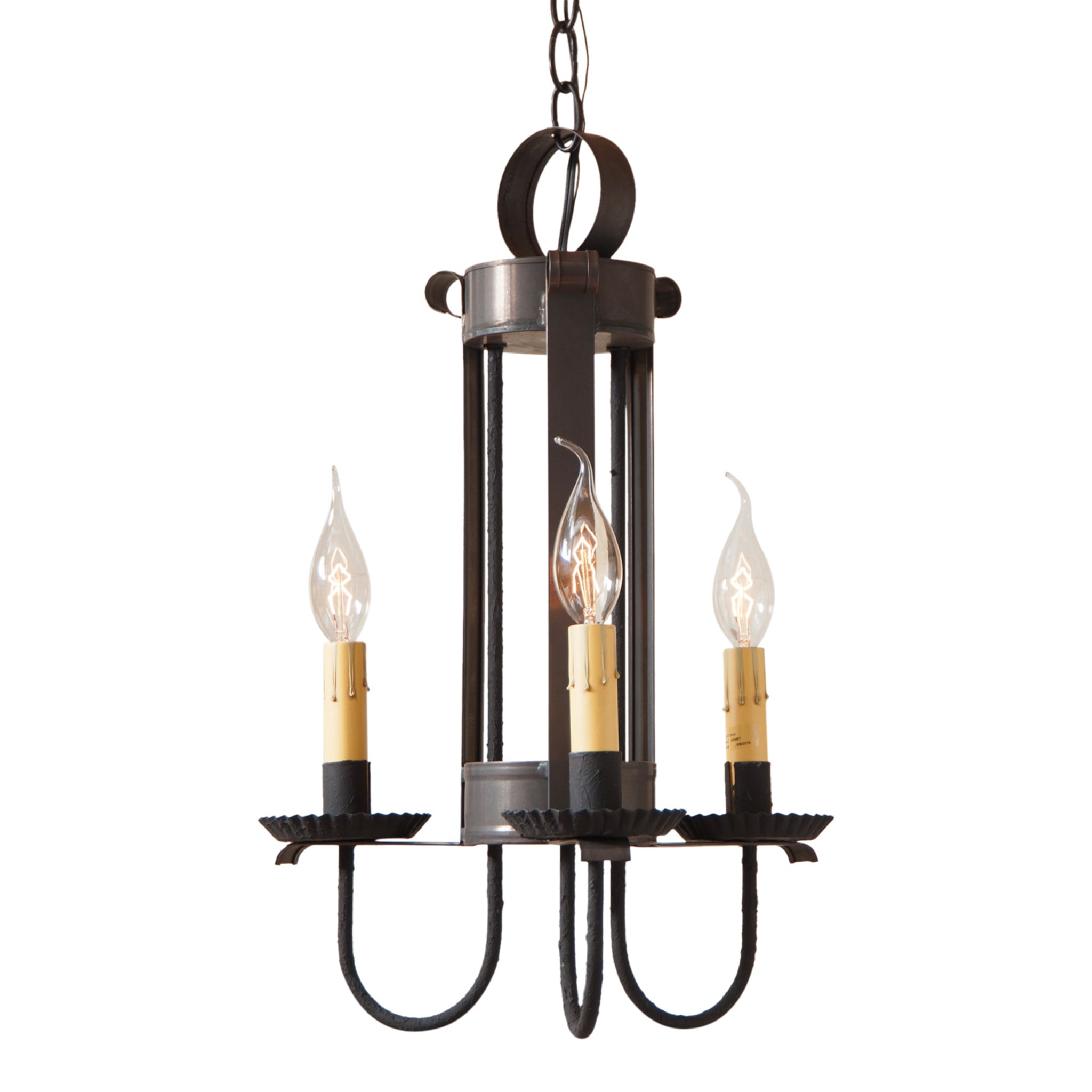 The Amherst Light is a distinctive fixture featuring textured black arms, crimped pans, and a center crafted from wider metal strips. This eye-catching design adds character and charm to any space, making it a perfect choice for your hall, mudroom, or any room in your home. Kettle Black finish.
