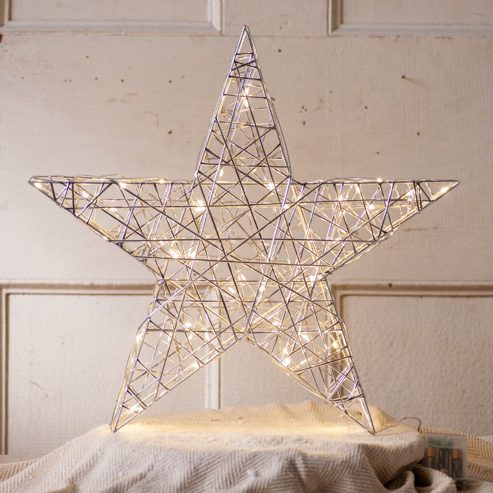 • Featuring warm white lights, the LED star includes a timer.