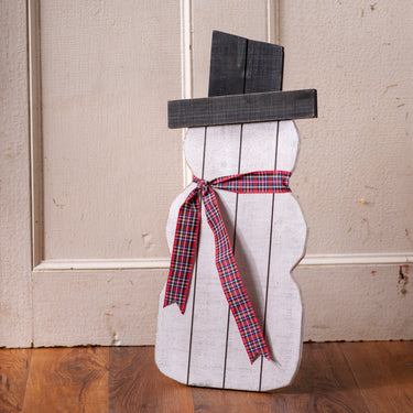 This adorable slat snowman is able to hang on your wall or with the included dowel, it will stand to greet visitors on the porch.