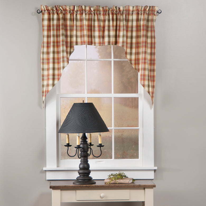 Featuring a 1.5-Inch rod pocket, our unlined Lemon Pepper Swag may be hung on a tension rod for mounting inside a window box or a standard curtain rod. This swag may be used with our Lemon Pepper Valances for wider windows.