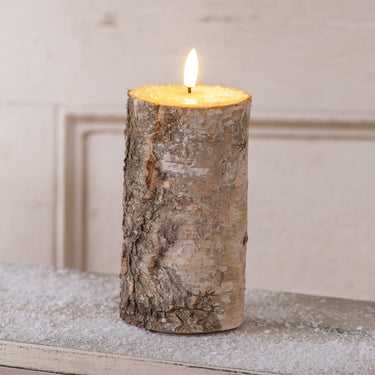 Illuminate your space with our beautiful battery-operated timer pillar, wrapped in authentic birch bark for a one-of-a-kind look. Each pillar showcases unique colors and textures, adding natural charm to your decor. Imported.