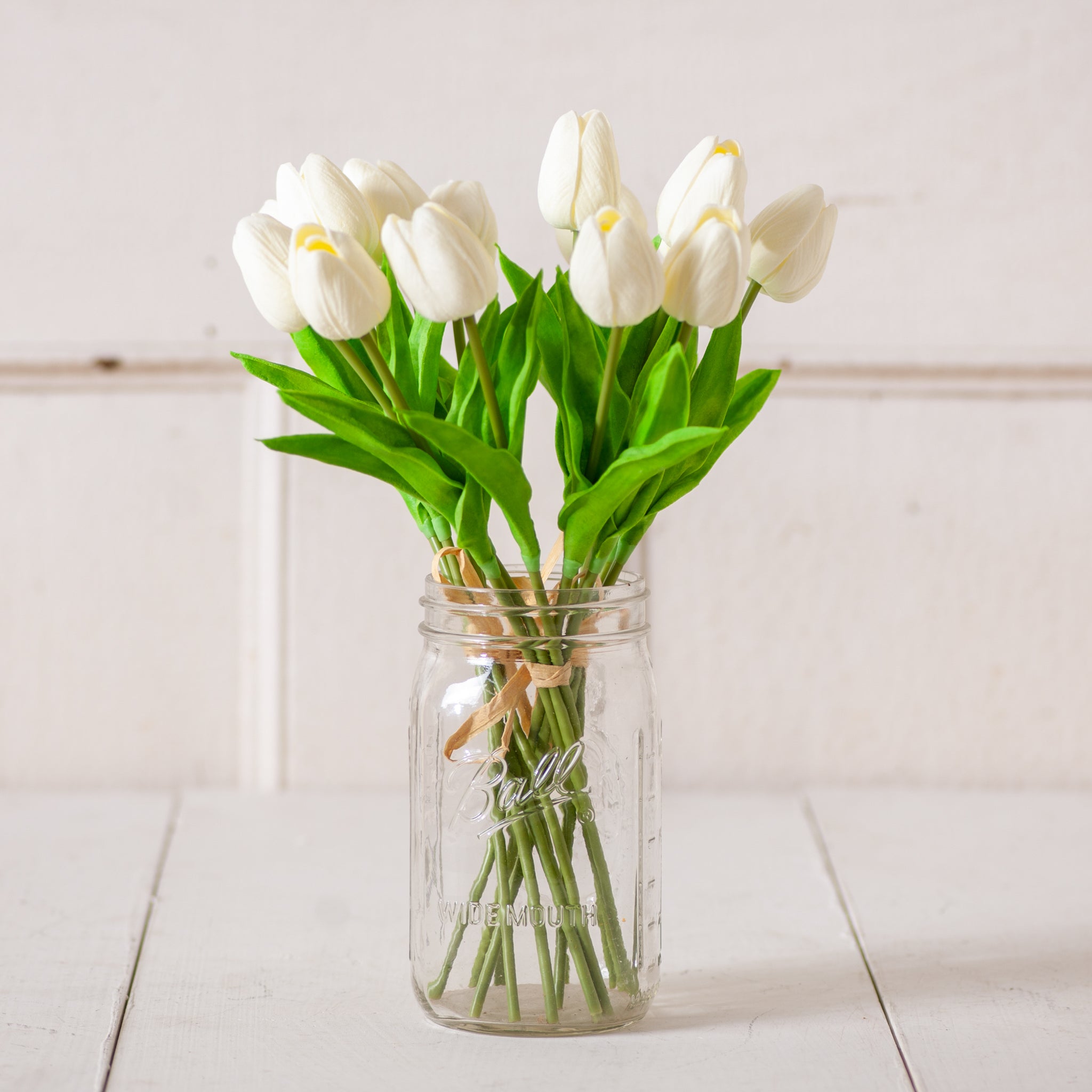 Bring the sweetness of spring and summer into your home with our lifelike real-feel tulips! Each set includes five tulips, adding a vibrant pop of color and softness to your space. The incredible "real feel" of these faux flowers ensures a quality that won't disappoint. Imported.