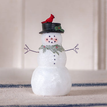 Add a charming touch to your holiday decor with this delightful resin snowman. Sporting a classic black hat, this festive figure is perfect for brightening up your mantel or windowsill with seasonal cheer. Imported