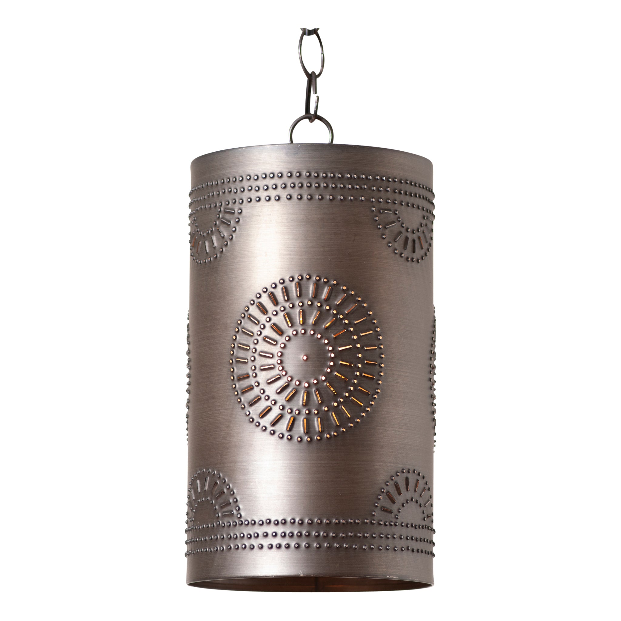 Rustic Cylinder Pendant in Kettle Black Tin
