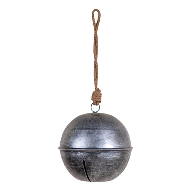 Rustic Hanging 6-Inch Dia Jingle Bell in Antique Silver