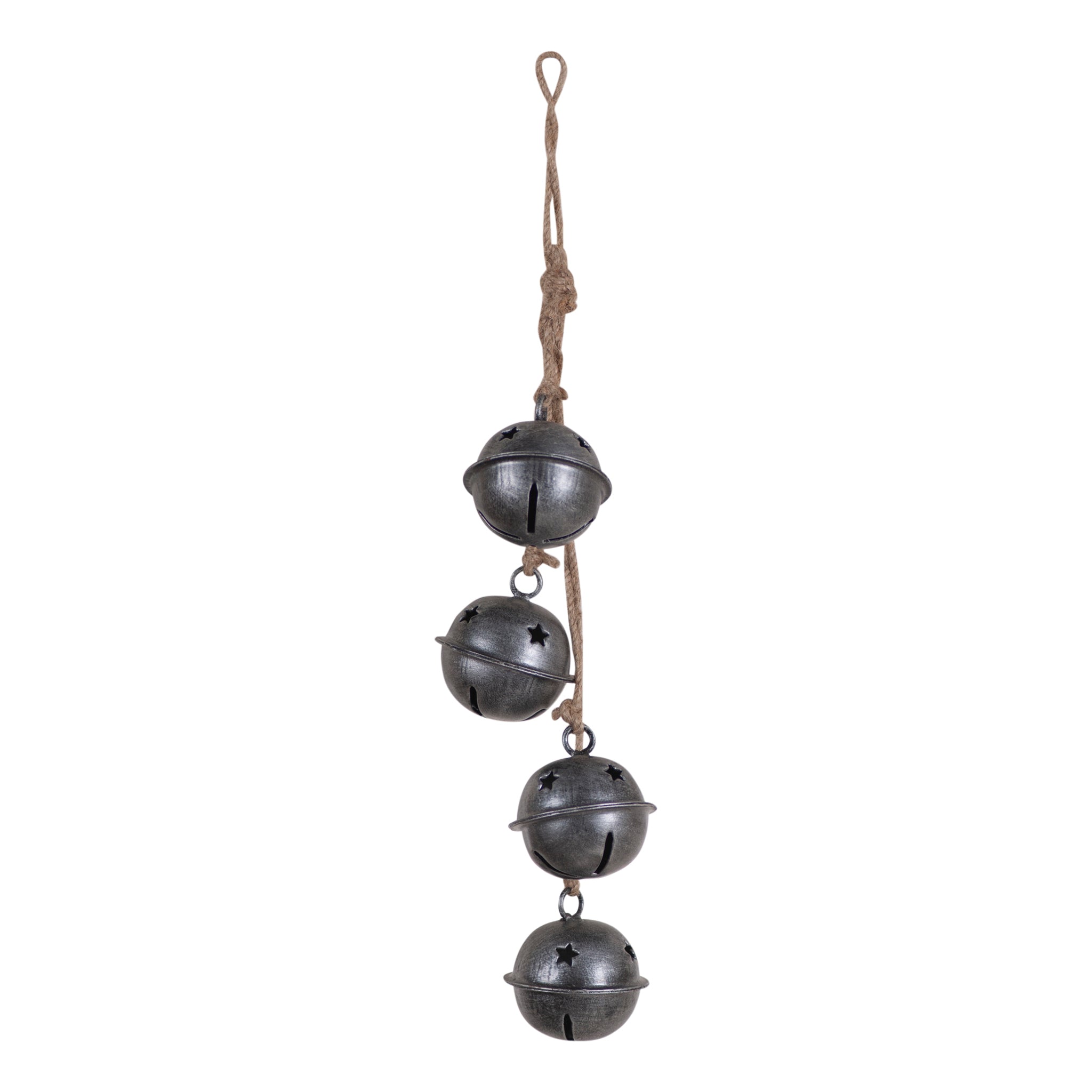 Bring festive joy to your holidays with this set of four antique silver bells. Hanging from a rustic jute rope, these bells offer a charming jingle that enhances any decor. Perfect for door knobs, fireplaces, or eaves, they create a delightful vintage look. Measuring 15" high, they make a perfect statement piece for welcoming guests. The crisp, loud chime adds extra cheer to your Christmas celebrations. Imported.