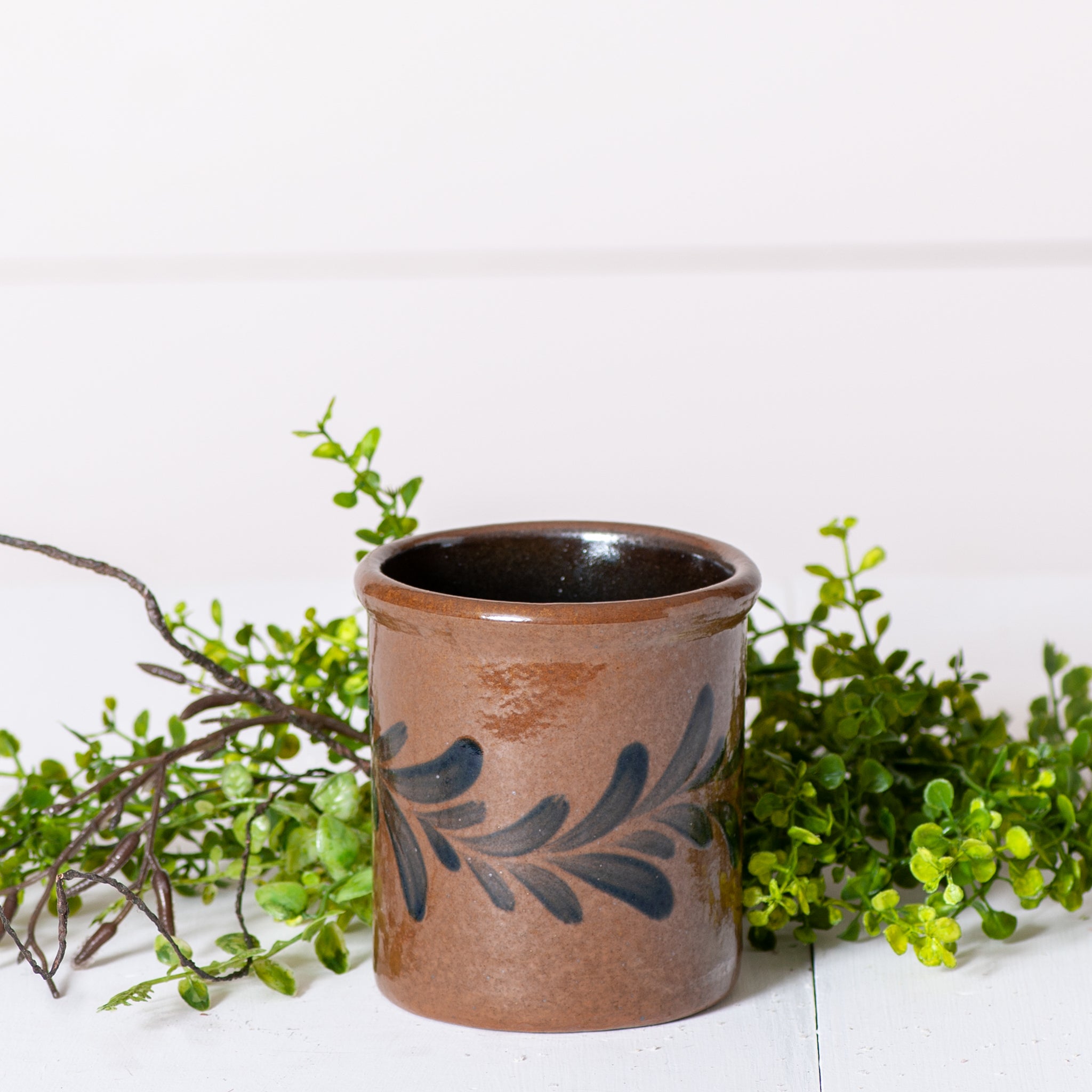 Our salt-glazed pottery is handmade in Wisconsin where each piece is hand decorated and kiln fired, creating a unique piece each and every time. No two pieces or coloring are ever identical due to the process and kiln placement. Colors may range from a lighter wheat background to a darker cinnamon.