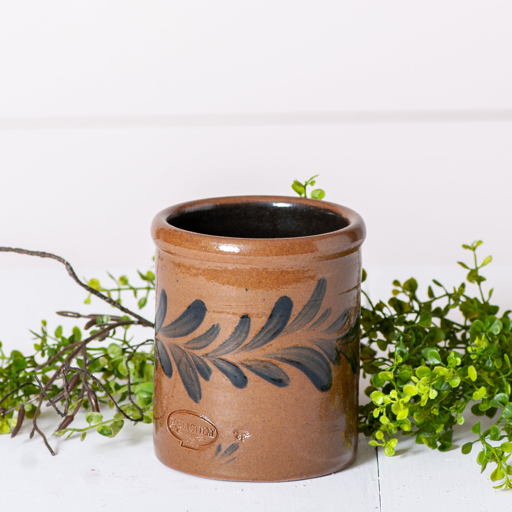 Home Salt-Glazed 1 Quart Crock with blue design