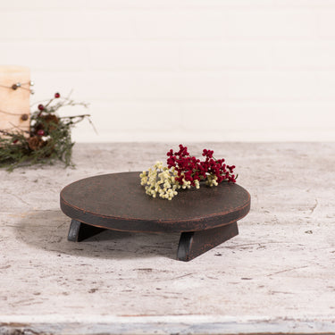 A great piece for using in the center of your table for a little added height. These versatile risers can be used in multiple places throughout the home or as an added height accessory for the buffet table. Made in the USA. Created from pine wood, painted and slightly distressed.