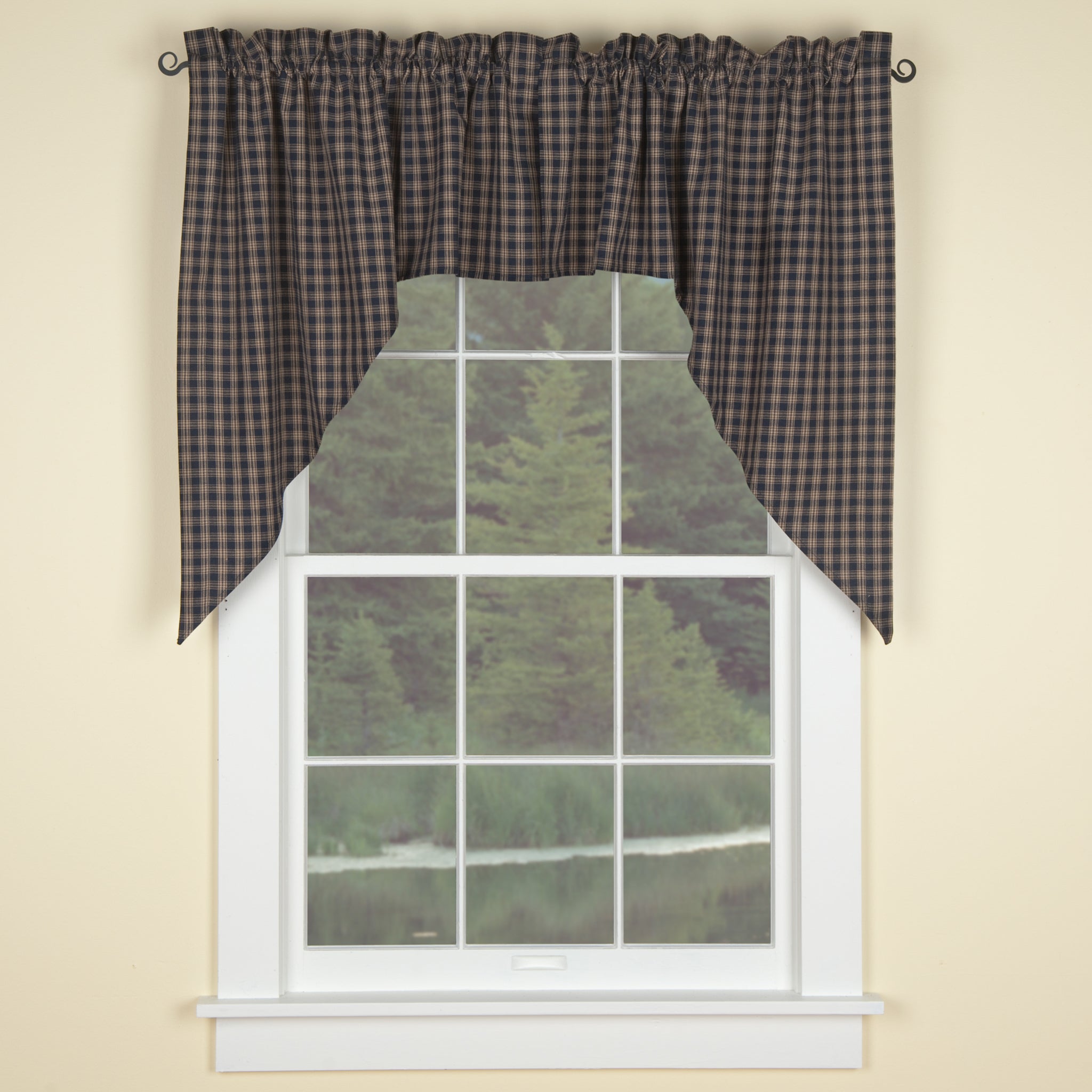 Featuring a 1.5-Inch rod pocket, our unlined Sturbridge Swags may be hung on a tension rod for mounting inside a window box or a standard curtain rod. Featured in Navy, this swag may be used with our Sturbridge Valances for wider windows.
