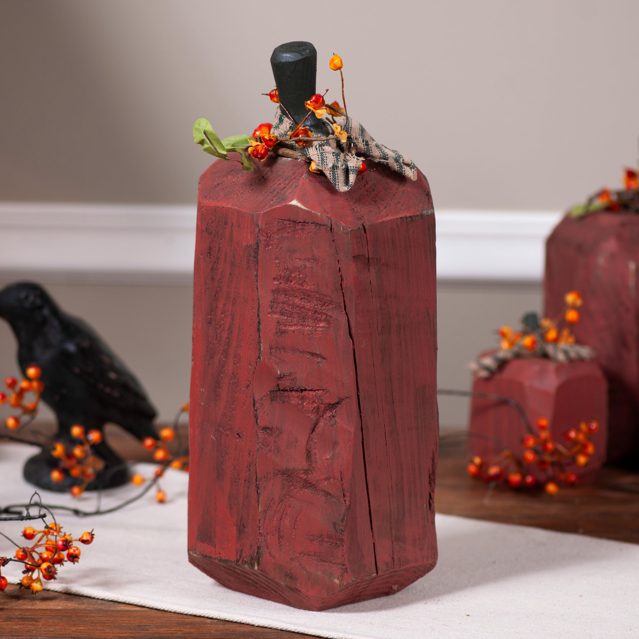 Make a bold statement in your fall decor with our Tall Fat Wooden Pumpkin. Featuring a distressed Terra Cotta finish, chunky handcrafted design, and charming accents like a green stem, plaid bow, and berry sprig, this rustic piece is perfect for porches, hearths, or entryways. Its eye-catching height adds dimension and cozy autumn flair to any seasonal display.