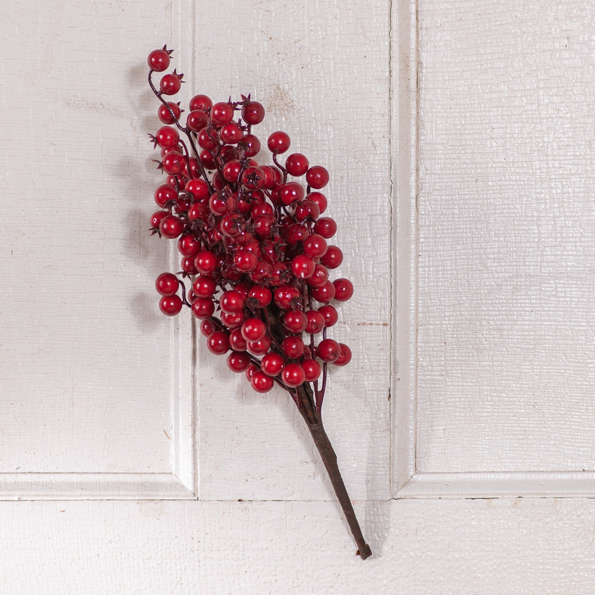 This classic red berry pick is designed to withstand the elements, making it perfect for outdoor decor. Durable and weatherproof, it adds a festive touch to your holiday display. Imported.