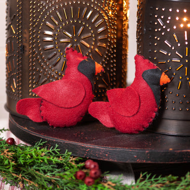 Add a cozy woodland touch to your decor with the Woolen Cardinal Set. Crafted from soft felt in rich red tones, these charming handmade birds bring warmth and texture to your holiday or everyday displays. Perfect for mantels, tiered trays, or table accents, this delightful pair captures the timeless beauty of cardinals in a rustic, primitive style.